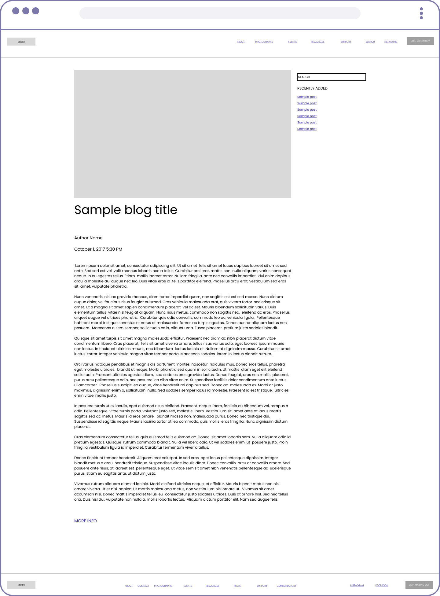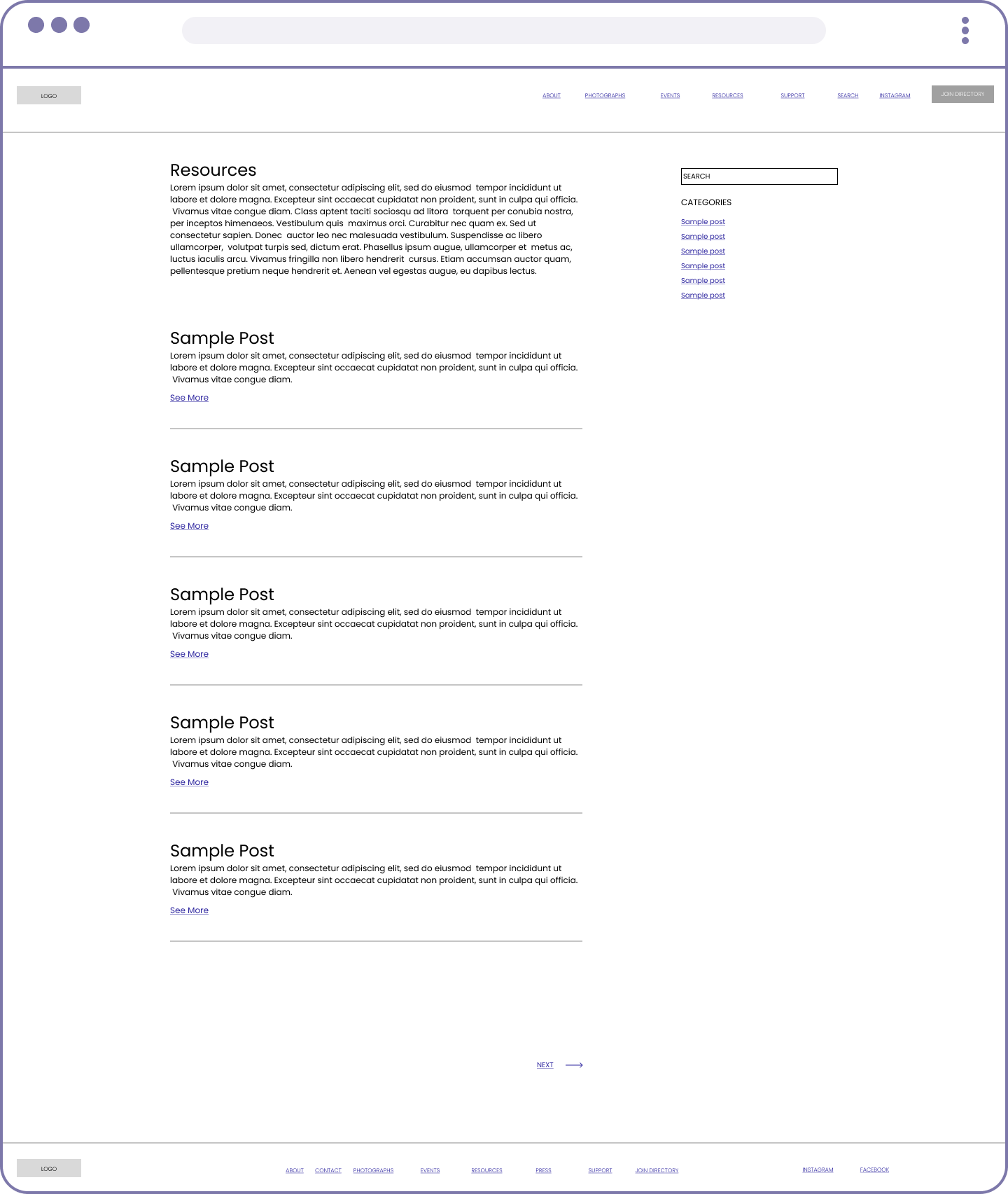 My role in this project was as lead designer under the suppervision and guidance of my boss. We met with the client regularly to understand her vision for the re-design of the website and its future purpose while also taking into consideration the importance of archiving the posts and photo collections that were part of the site in its blog form. Additionally, I worked closely with a developer to bring the Figma designs to life in Wordpress.