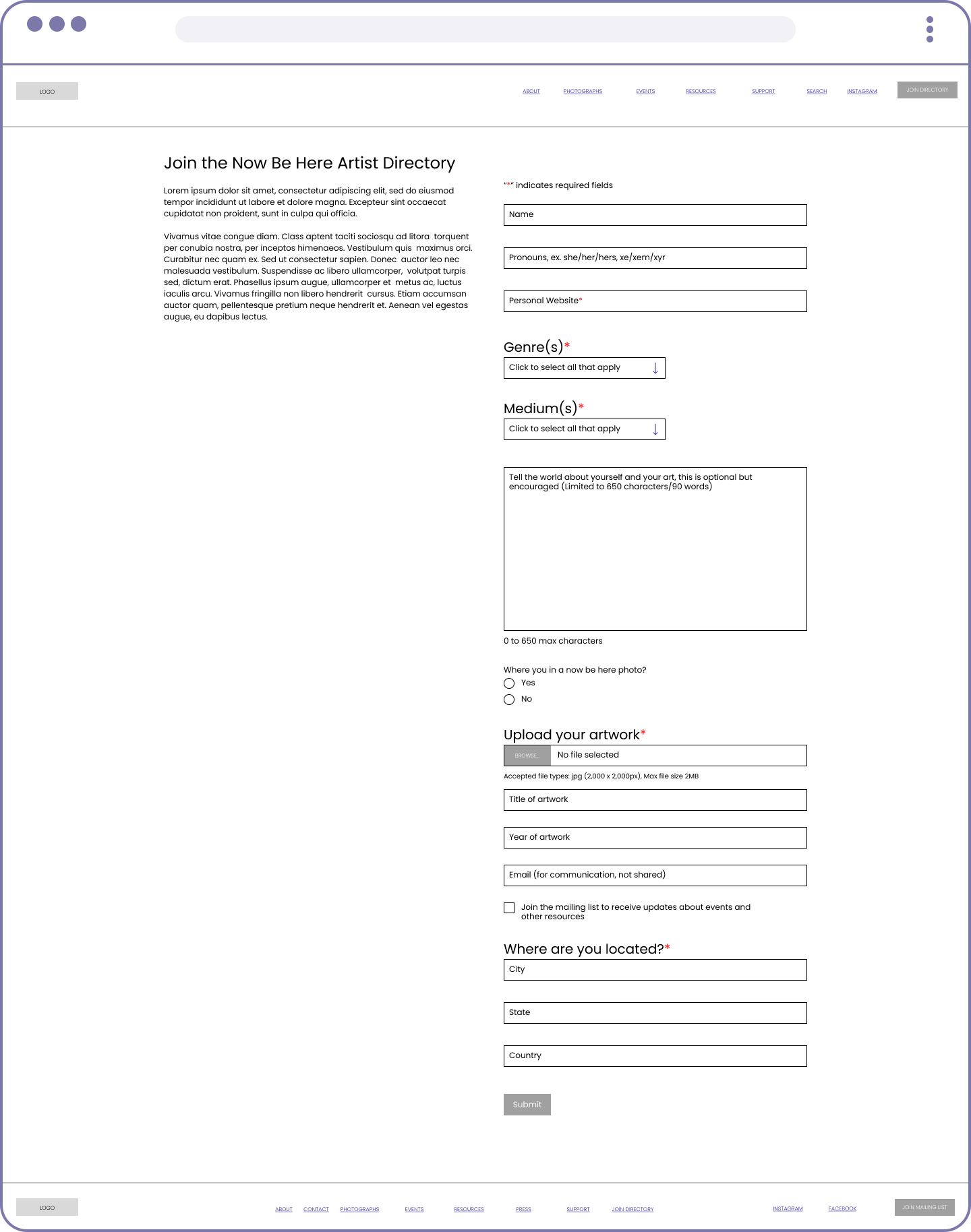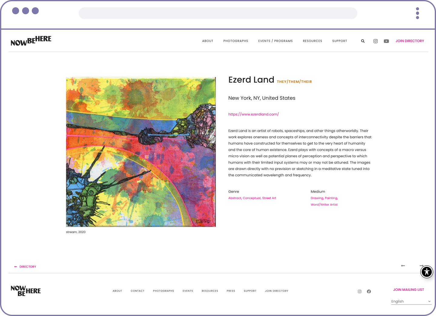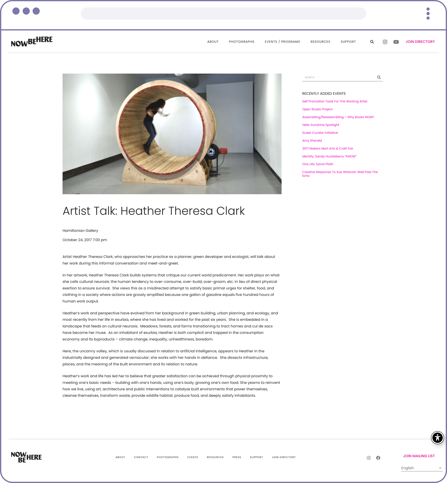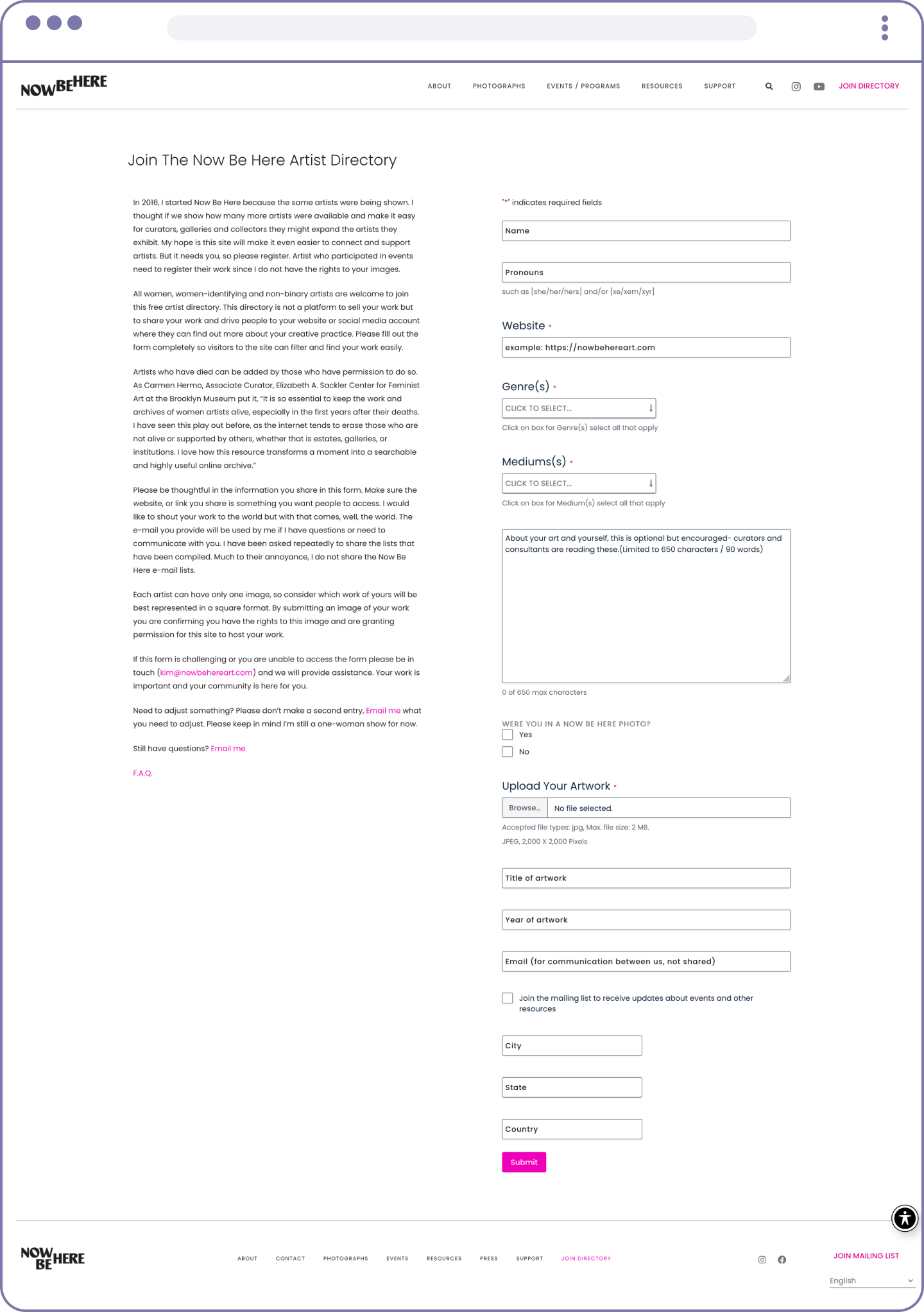 Now Be Here Los Angeles is an non-profit organization that exists to give visibility to women and non-binary artists, brining equity to the art world. This project was a full re-design of their website which initially was a blog with artists resources. The new vision for the website was to convert it into an artist directory for Women and Non-Binary artists locally and globally. This project was assigned to me during my internship at Wong.Digital.